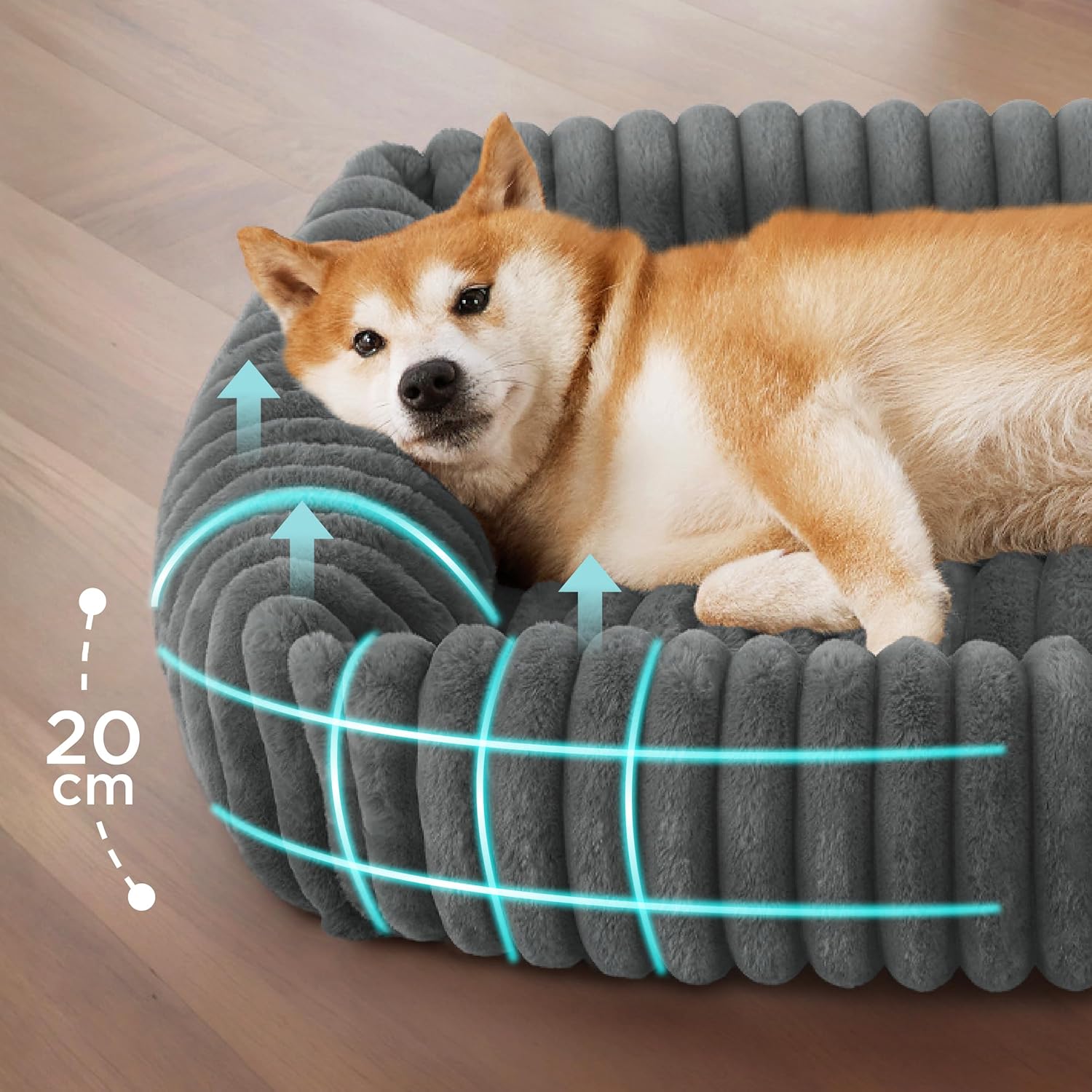 BEDSURE Orthopaedic Dog Bed, Ergonomic Dog Sofa, 89 x 63 cm, Dog Couch with Egg Carton Foam for Medium Dogs, Washable, Non-Slip Dog Beds, Grey
