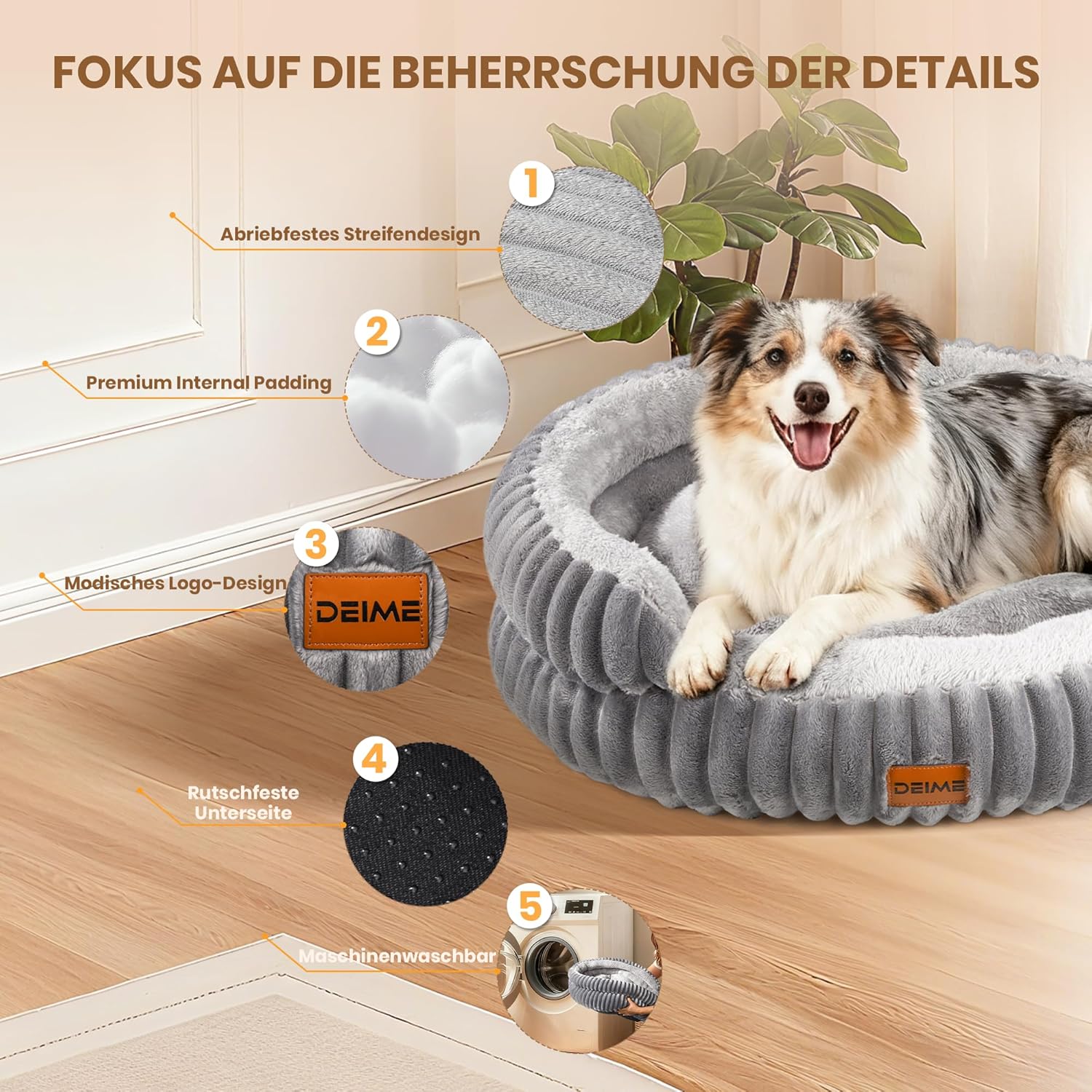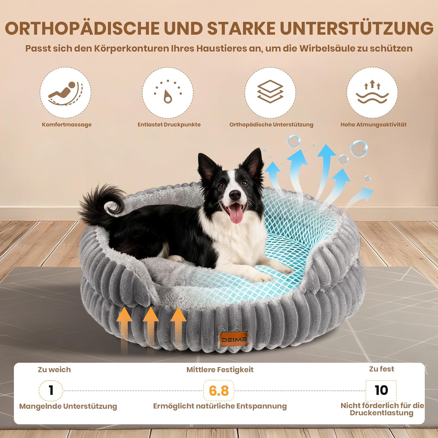 Non-slip and easy to clean: the dog bed is machine washable as a whole. Tumble dry after washing on low heat and leave for 1-2 days before use to make it fluffy again. The bottom is equipped with non-slip rubber buffers that securely anchor the dog bed to the floor and prevent slipping while your dog plays or rests on it. So it provides your pet with a safe and comfortable resting place.