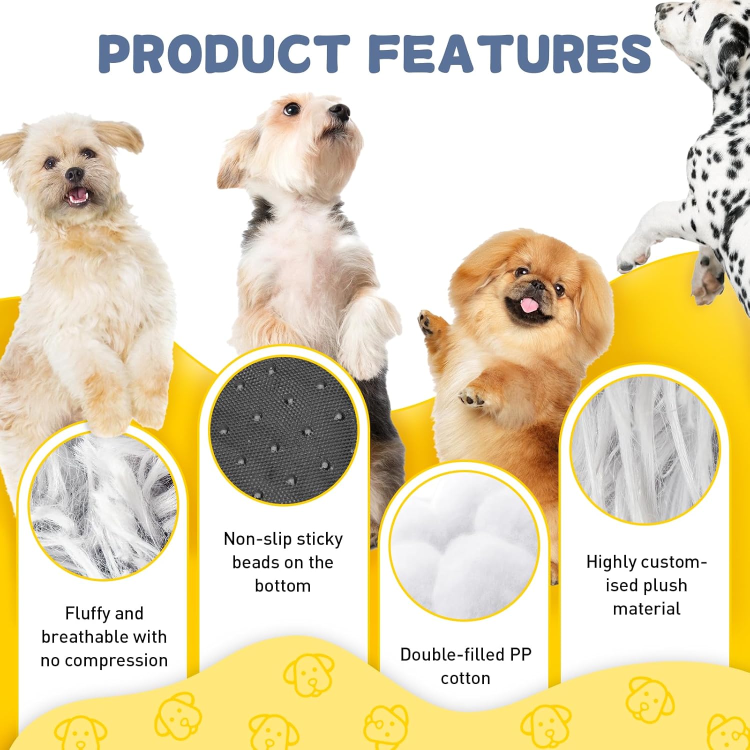 CLOUD LIKE COMFORT The plush cat cushions offer the feeling of sinking into a cloud with its 4cm thick, luxuriously soft plush surface. The dense PP cotton filling provides optimal support for joints and body, giving your pet a deep, restful sleep. A perfect blend of softness and comfort for all fur lovers.